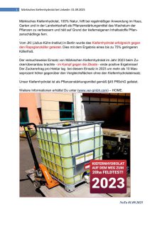 Aus dem Kiefernhydrolat der Märkischen Kiefer, für die Stärkung der Pflanzen zugelassen gemäß § 45 PflschG.